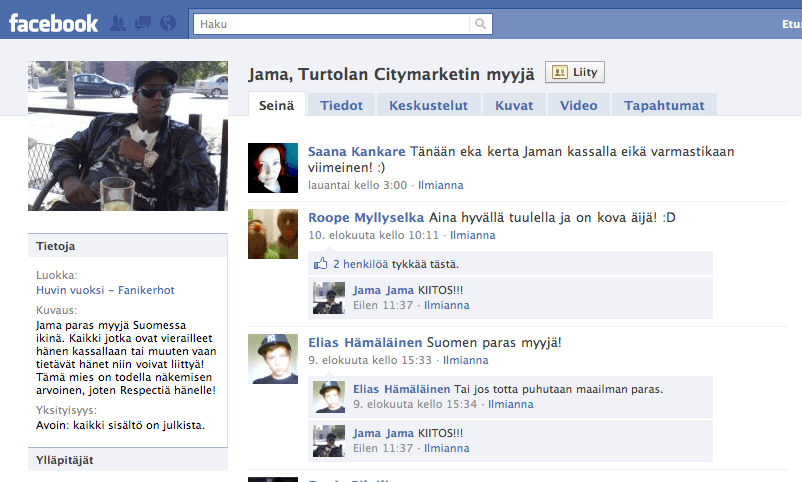 Jama Jamalla on oma Facebook-fanisivu, jossa ystäviä on jo 2300 naamakirjailijan verran. Herran omalla kaveritililläkin on 1300 ystävää.