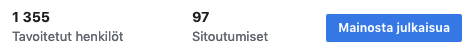 Sponsorointi onnistuu helposti ”Mainosta julkaisua” -painikkeen avulla. Painikkeen löydät sivullesi julkaistujen päivitysten alta.