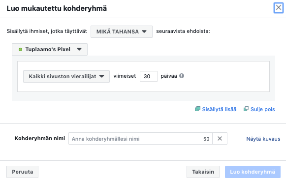 Pikselin avulla pystyt myös luomaan entistä parempia kohderyhmiä. Näin ollen esimerkiksi re-targetin eli uudelleen kohdennettu mainonta onnistuu. Tämä tarkoittaa sitä, että pikseli kohdistaa mainoksiasi uudelleen esimerkiksi nettisivuillasi jo vierailleille kävijöille tai sinulta jo ostaneille ihmisille.